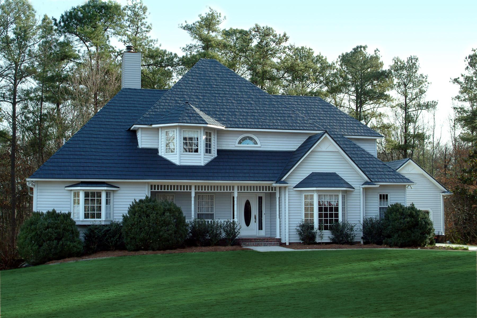 White House With Blue Metal Roof : Today's metal roofing—whether made of steel, aluminum, or other metal—is more i absolutely love this white house with the blue metal roof.. Metal roofs are becoming more popular for their versatility, durability, and low maintenance. Free shipping on most items. Part of the house with one white window on a blue wall under a green tiled roof behind a metal fence. Maybe a metal roof is right for you. This asphalt shingle roof replacement in highland lakes, nj featured a gorgeous deep blue sea standing seam metal roof.